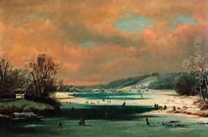 Winter Landscape With Figures On The River