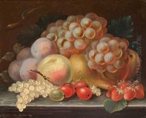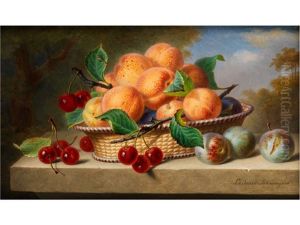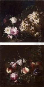 Blumenstillleben Mit Pfirsichen Und Pflaumen