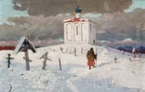 The Chapel On The Hill In Winter; The Village Church Inwinter