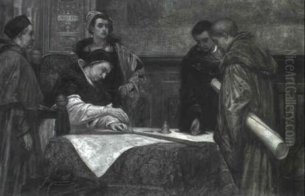 Bring the timeless beauty of Andrew Benjamin Donaldson's Pope Alexander Vi Deciding Between The Claims Of Spain And Portugal By Drawing A Line Across The Map Of The World And into your home with a handmade oil painting reproduction. Carefully recreated on canvas by skilled artists using traditional techniques, this piece captures the delicate brushwork, subtle light, and vibrant color of the original masterpiece. With museum-level quality and rich texture, it brings elegance and artistic depth to any space. Enjoy free shipping and make this masterpiece a part of your personal collection.