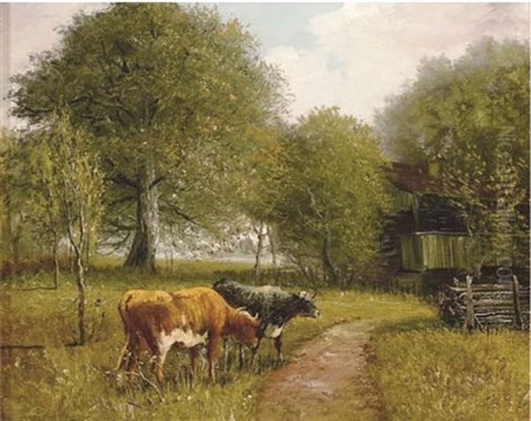 Cows By A Farmhouse Oil Painting by Andrew Melrose