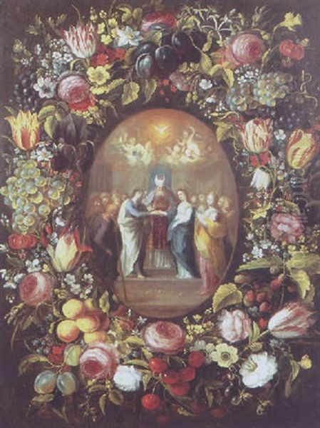 A Garland Of Tulips And Other Flowers Surrounding The Marriage Of The Virgin