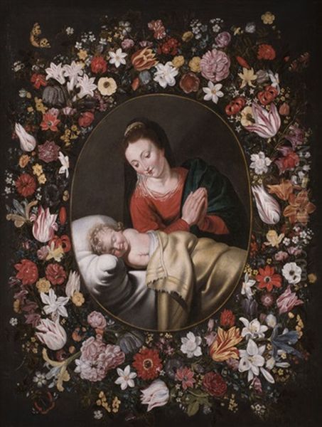 Madonna Mit Dem Schlafenden Christusknaben In Einem Kranz Aus Rosen, Tulpen, Lilien Und Anderen Blumen