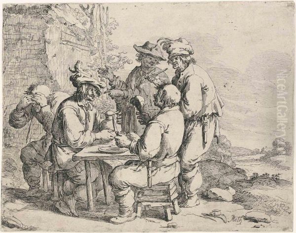Three Peasants At The Table, With A Harlot