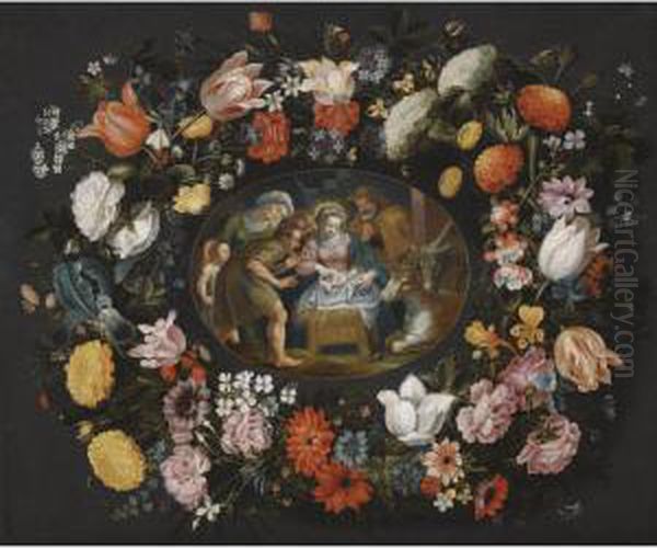 Adoration Of The Shepherds Surrounded By A Garland Of Flowers
