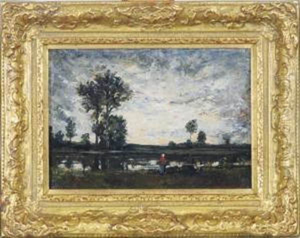Woman In A Red Shawl By The Riverbank