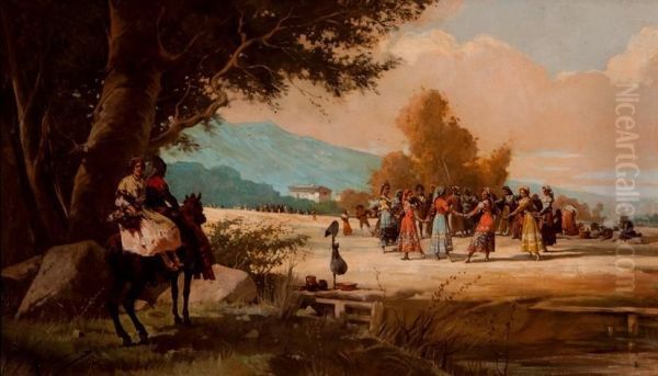 Bring the timeless beauty of Angel Lizcano Y Monedero's Fiesta En La Pradera into your home with a handmade oil painting reproduction. Carefully recreated on canvas by skilled artists using traditional techniques, this piece captures the delicate brushwork, subtle light, and vibrant color of the original masterpiece. With museum-level quality and rich texture, it brings elegance and artistic depth to any space. Enjoy free shipping and make this masterpiece a part of your personal collection.