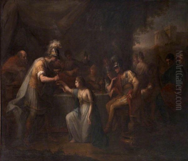 Bring the timeless beauty of Angelica Kauffmann's Vortigern, King of Britain, enamoured with Rowena at the Banquet of Hengist, the Saxon General into your home with a handmade oil painting reproduction. Carefully recreated on canvas by skilled artists using traditional techniques, this piece captures the delicate brushwork, subtle light, and vibrant color of the original masterpiece. With museum-level quality and rich texture, it brings elegance and artistic depth to any space. Enjoy free shipping and make this masterpiece a part of your personal collection.