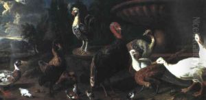 Peacocks, Pheasants, Partridges And Other Birds By A Plinth