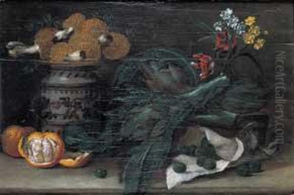 A) Piatto Di Funghi Con Carciofi, Agrumi E Fiori In Boccia B) Piatto D'asparagi, Limoni, Pesci E Funghi E Fiori In Boccia