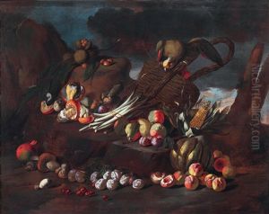 Natura Morta Con Zucche E Uva; Natura Morta Con Funghi, Fichi, Susine E Mela (2 Works)