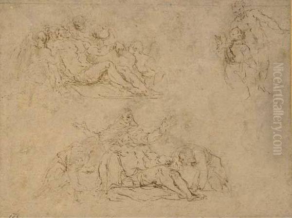 Deux Etudes Du Christ Mort Entoure De Figures Avec Une Etude D'unsaint Avec Le Christ
