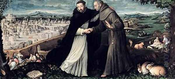 The meeting of St Francis of Assisi and St Dominic in Rome