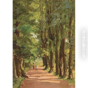 Two Figures On A Road Through Woods