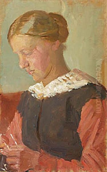 Bring the timeless beauty of Anna Ancher's A seated young woman with her hair up. into your home with a handmade oil painting reproduction. Carefully recreated on canvas by skilled artists using traditional techniques, this piece captures the delicate brushwork, subtle light, and vibrant color of the original masterpiece. With museum-level quality and rich texture, it brings elegance and artistic depth to any space. Enjoy free shipping and make this masterpiece a part of your personal collection.