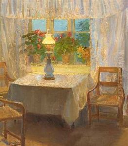 Kunstnerinden Anna Anchers Mor Ane Hedvig Brondum Siddende Ved Sit Skrivebord I Den Rode Stue