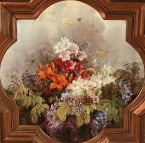 Supraporte: Kunstvoll Arrangiertes Stilleben Aus Pfingstrosen, Rosen, Flieder Und Grasern