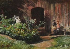 Fruhlingsidylle - Mutter Mit Ihren Tochtern Im Garten