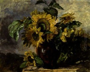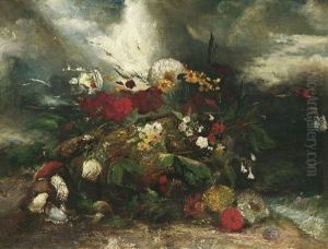 Stillleben Mit Chinesischer Deckelvase Und Blumenstraus Auf Konsoltisch