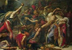 Persee Tenant La Tete De Meduse Pour Combattre Les Habitants De L'ile De Seriphe.