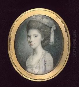Ladies (sisters?), Both Wearing White Dresses With Frilled Collars, One With Frilled Trim To Her Shoulder, Their Powdered Hair Dressed With Blue Bandeaux (2 Works)