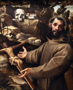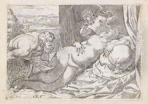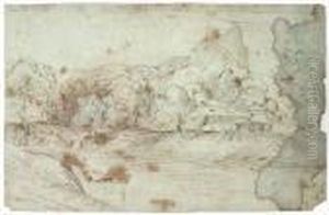Portrait Of Cardinal Odoardo Farnese (1583-1626), Three-quarter Length, Seated In The Camerino Degli Eremiti In Palazzetto Farnese, Before A Window, With The Court Entertainer "hairy Harry" And His Dog, The River Tiber And The Farnesina Beyond