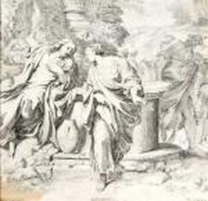 Mediterranean Landscape With Herdsman And Woman In The Foreground