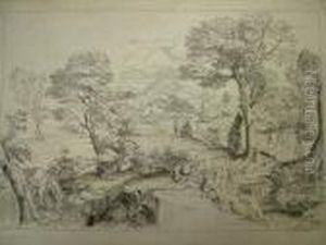 A Landscape With An Elegant Couple Buying Fish From A Fisherman