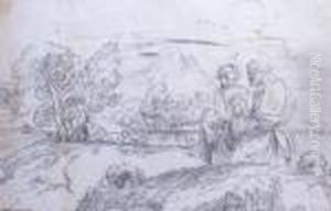 Mediterranean Landscape With Herdsman And Woman In The Foreground