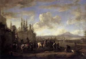 Bring the timeless beauty of Annibale Carracci's Landscape With Men Bowling into your home with a handmade oil painting reproduction. Carefully recreated on canvas by skilled artists using traditional techniques, this piece captures the delicate brushwork, subtle light, and vibrant color of the original masterpiece. With museum-level quality and rich texture, it brings elegance and artistic depth to any space. Enjoy free shipping and make this masterpiece a part of your personal collection.