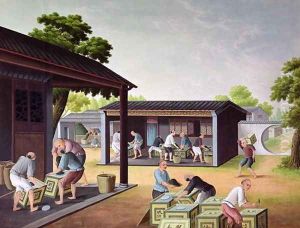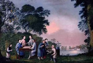 Panels depicting figures on a terrace, Qianlong period, 1736-95