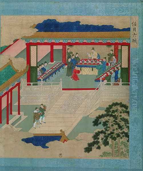 Bring the timeless beauty of Anonymous Artist's Emperor Hui Tsung (r.1100-26) taking part in a festival in which he drinks from a cup made of precious stone, from a history of Chinese emperors into your home with a handmade oil painting reproduction. Carefully recreated on canvas by skilled artists using traditional techniques, this piece captures the delicate brushwork, subtle light, and vibrant color of the original masterpiece. With museum-level quality and rich texture, it brings elegance and artistic depth to any space. Enjoy free shipping and make this masterpiece a part of your personal collection.