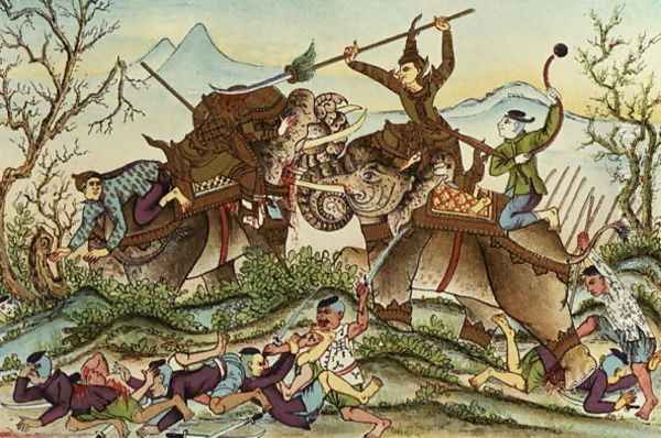 Bring the timeless beauty of Anonymous Artist's The Invincible Vorvong Decapitating his Opponent with One Stroke, illustration from the Cambodian Lengend of 'Vorvong and Saurivong', collected by Auguste Pavie on his Mission in Indo-China, 1879-98 into your home with a handmade oil painting reproduction. Carefully recreated on canvas by skilled artists using traditional techniques, this piece captures the delicate brushwork, subtle light, and vibrant color of the original masterpiece. With museum-level quality and rich texture, it brings elegance and artistic depth to any space. Enjoy free shipping and make this masterpiece a part of your personal collection.