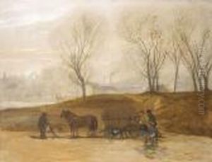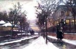 Snow-covered Street With A Horse-cab