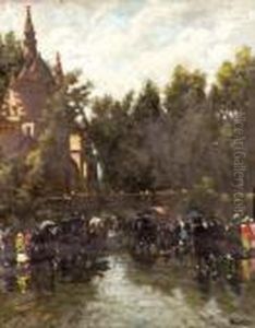 A. "sonntagsvergnugen Im Park". Sign. Ol Auf Lwd. 55 X 67 Cm. Rahmen