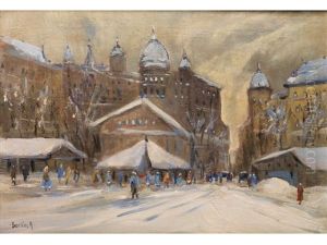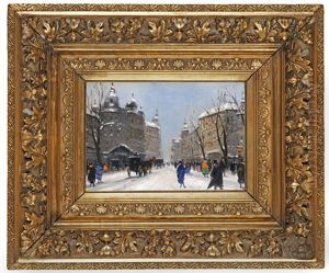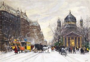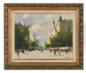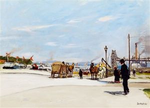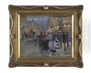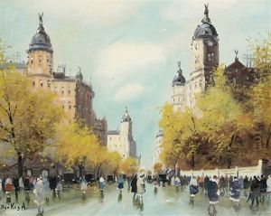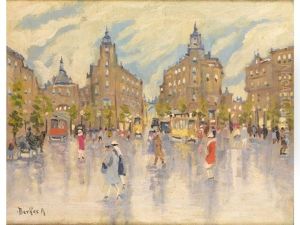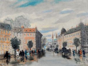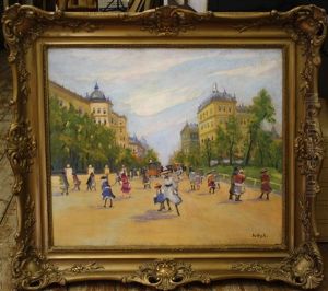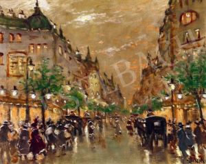 Budapester Strassenszene, Im Hintergrund Die Freiheitsbrucke