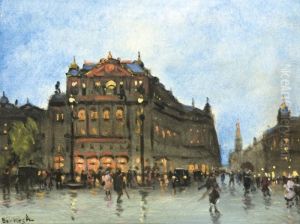 Nagyvarosi Forgatag Oil Painting by Antal Berkes