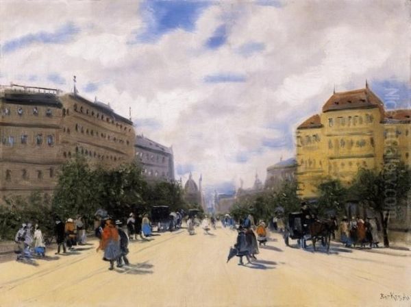 Street Scene Oil Painting by Antal Berkes