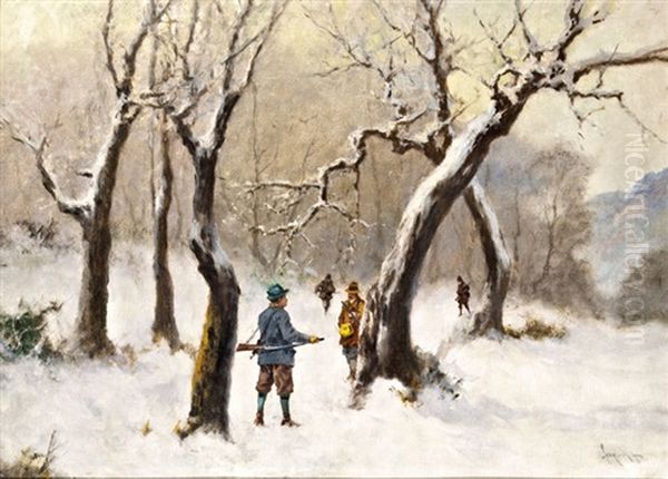 Teli Vadaszat Oil Painting by Antal Neogrady