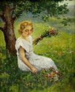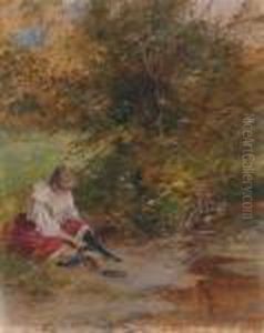 Junge Frau Mit Ihrem Hund Bei Der Rast
