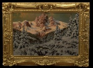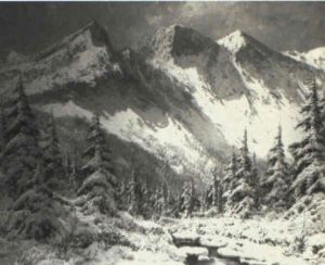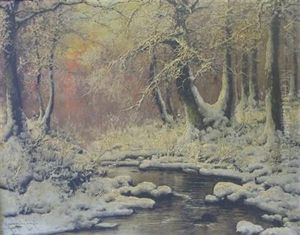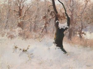 Gruppe Von Vier Jagern Auf Einer Verschneiten Waldlichtung