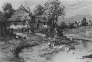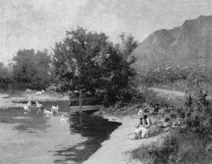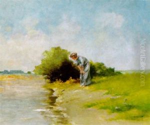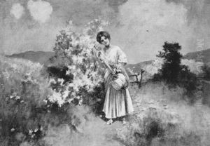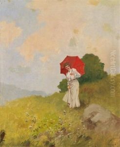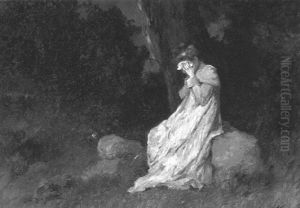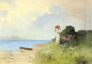 Madchen An Felsiger Kuste, Sinnend Auf Das Meer Blickend