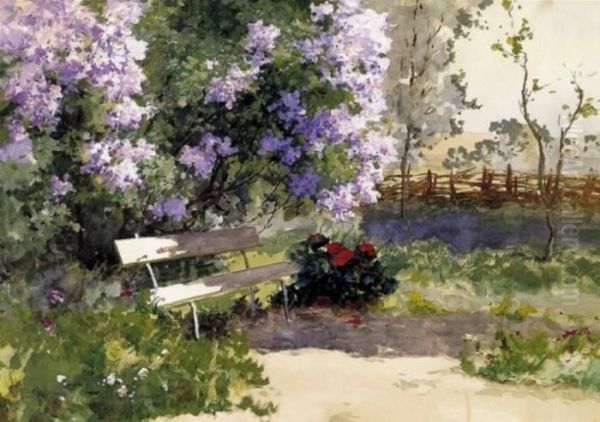 Garden Bench By Lilac Bush