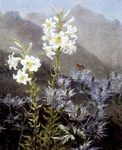 Easter Lillies, Poppies And Bluebells In A Summer Landscape