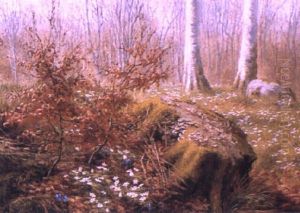 Hvide, Bla Og Gule Anemoner I Skovbunden