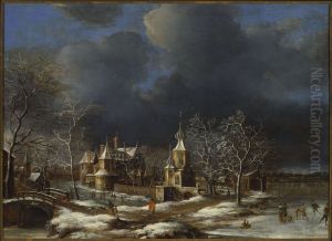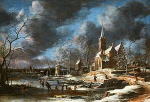 A Winter Landscape With Ice Skaters