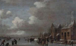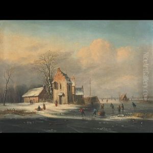 A Winter Landscape With Skaters Near The Church In Beverwijk