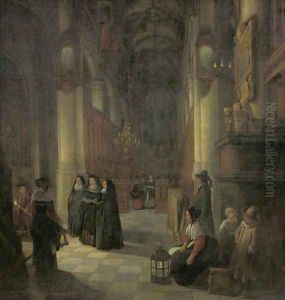 Bring the timeless beauty of Anthonie Delorme's Elegant Women And Other Townsfolk In The Aisle Of A Gothic Church At Night into your home with a handmade oil painting reproduction. Carefully recreated on canvas by skilled artists using traditional techniques, this piece captures the delicate brushwork, subtle light, and vibrant color of the original masterpiece. With museum-level quality and rich texture, it brings elegance and artistic depth to any space. Enjoy free shipping and make this masterpiece a part of your personal collection.