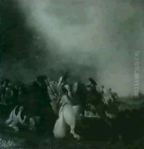 Battle Scene With A Village In The Distance