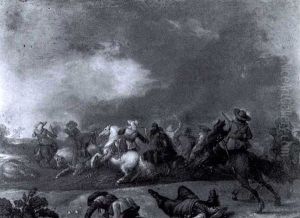 Landskab Med Kaempende Ryttere
